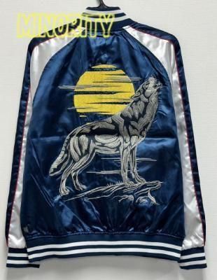 ウルフ刺繍のサテンスカジャンです。 ネイビーブルーxシルバーxレッド ラグラン袖・切替配色・パイピング入り ポリエステル100% サテン 男女共用 サイズは M / L / XL とございます。 洗濯機使用不可 アイロンは使用しないで下さい。 ◎ 発送方法 宅配便:80サイズ (お届け先地域とサイズにより、価格が変動します) WOLFスカジャン Wolves オオカミ・スカジャン 狼スカジャン おおかみスカジャン ウルフ・スカジャン うるふスカジャン Wolfe/ウォルフ/LOBO/ロボ/LOUPS/ルプス・スカジャン